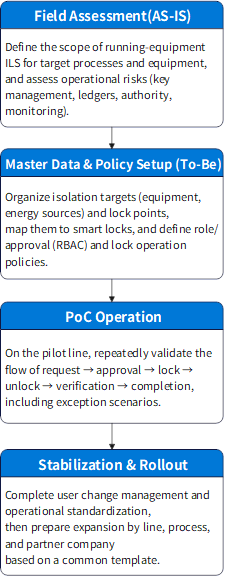 After stabilizing execution, control, and records in running-equipment ILS, shut-down procedures and wider deployment can be expanded step by step under the same operating principles.